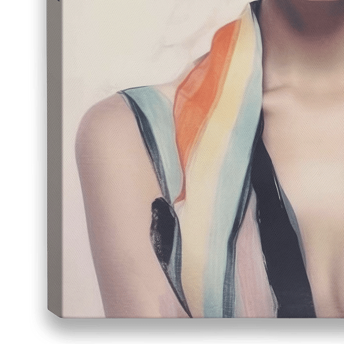 Modern portret met de titel "Stripes". Pastelkleuren geven dit werk een zachte sfeer en de zwarte tonen zorgen voor het nodige contrast. Gaaf in groot formaat!