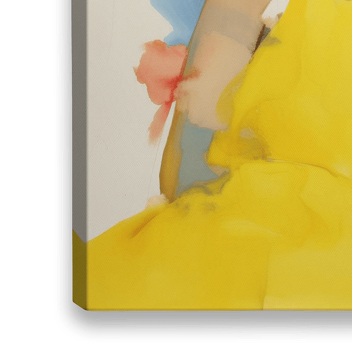 Modern portret, aquarel. Een vrouw op de rug gezien in voornamelijk geel, abstract. Een bijzondere blikvanger! Kies zelf het formaat en materiaal bij dit werk en maak het helemaal naar jouw wens.