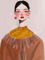 Modern portret, illustratie in aardetinten en zacht roze. Een bijzondere blikvanger voor je interieur! Kies zelf het formaat en materiaal bij dit werk en maak het helemaal naar wens.