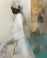 Modern portret in aardetinten met een vleugje goud en groen. Dit is een echte blikvanger voor je interieur. Kies zelf het formaat en het materiaal voor dit werk en maak het helemaal naar jouw wens.