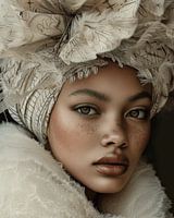 Modern portret in beige en taupe tinten. Dit is een echte blikvanger voor je interieur! Kies zelf het formaat en materiaal en maak het helemaal passend voor jouw muur.