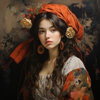 Modern portret in de stijl van de oude meesters. Een echte blikvanger voor in je huis! Dit werk komt het best tot haar recht wanneer je het af laat drukken op artframe, dibond of aluminium.
