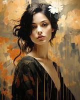 Modern portret en geel en oranje tinten. Mooi in ieder formaat en op elk materiaal. Heb jij al een mooi plekje in gedachten voor dit werk?