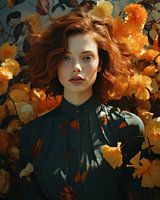 Koop dit portret Modern portret in oranje en groentinten van Carla Van Iersel op canvas, aluminium dibond, (ingelijste) fotoprint, behang en ArtFrame, op maat geprint in Fine-Art kwaliteit.