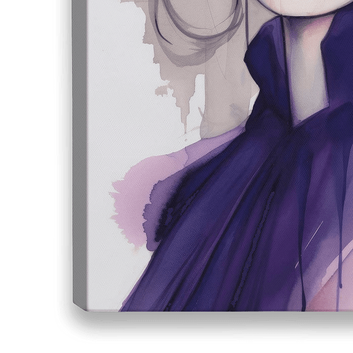 Modern portret in paars en oranje, aquarel. Voor wie van echt iets anders aan de muur houdt. Kies zelf het formaat en materiaal en maak dit werk helemaal naar jouw wens.