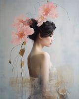 Modern portret in pastelkleuren, collage stijl. Kies zelf de afmetingen en het materiaal voor dit werk en maak het helemaal passend voor jouw interieur!