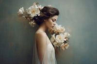 Modern portret in pastelkleuren "Flowergirl". Kies zelf het formaat en materiaal voor deze blikvanger en maak haar helemaal passend voor jouw interieur.