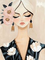 Blossoms of SerenityCarla Van Iersel Modern portret, illustratie in zachte kleurenCarla Van Iersel