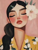 Modern portret in pastelkleuren. Dit werk vrolijkt ieder huis of kantoor op! Een bijzondere blikvanger voor je interieur! Kies zelf het formaat en materiaal bij dit werk en maak het helemaal naar wens.
