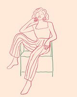 Modern portret van een vrouw in rood en groen. Woonstijl modern en bohemian. Lijntekening.
