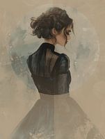 Modern portret in taupe en blauw, deels abstract. Contemporary art, kies zelf het formaat en materiaal bij dit werk en maak het helemaal passend bij jouw interieur. Exclusief bij werk aan de muur.