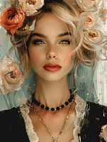 Modern portret met bloemen in pastelkleuren. Kies zelf het formaat en materiaal bij dit werk en maak het helemaal passend voor jouw interieur. Dit is een bijzondere blikvanger!