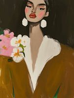 Modern portret met donkere achtergrond, illustratie. Een bijzondere blikvanger voor je interieur! Kies zelf het formaat en materiaal bij dit werk en maak het helemaal naar wens.