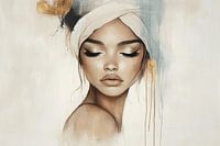Modern portret met een vleugje goud. Kies zelf het formaat en materiaal bij dit werk en maak er een echte blikvanger van voor jouw interieur!