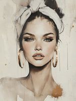Modern portret met gouden accenten. Een bijzondere blikvanger voor je interieur! Kies zelf het formaat en materiaal bij dit werk en maak het helemaal naar wens.