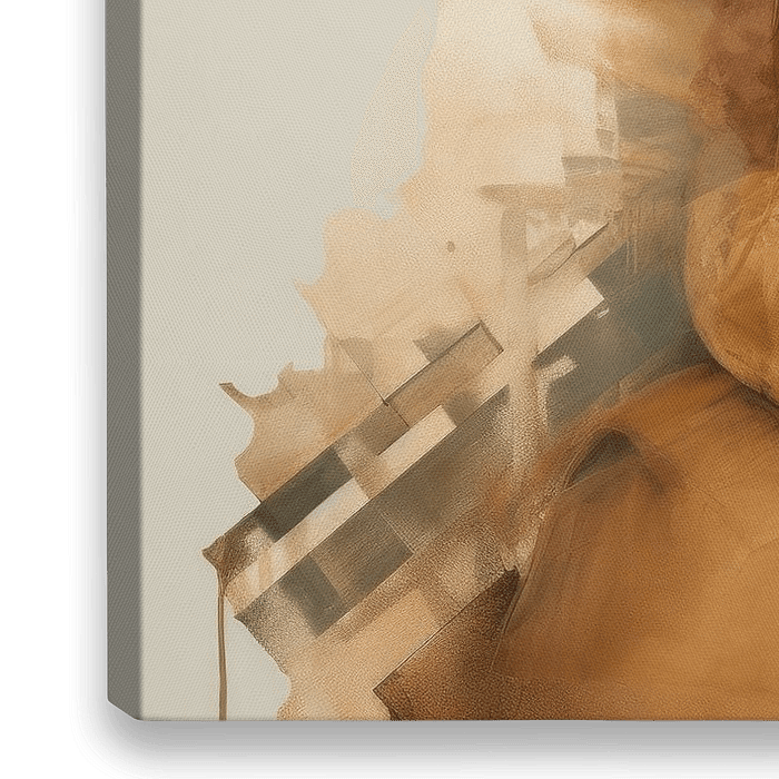 Modern portret van een jonge vrouw in oranje en bruin tinten. Ga jij voor deze blikvanger? Dan zul je daar geen spijt van krijgen! Kies zelf het formaat en materiaal en maak het werk helemaal passend voor jouw interieur.