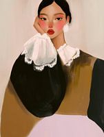 Modern portret in zwart, bruin, wit en roze. Een bijzondere blikvanger voor je interieur! Kies zelf het formaat en materiaal bij dit werk en maak het helemaal naar wens.