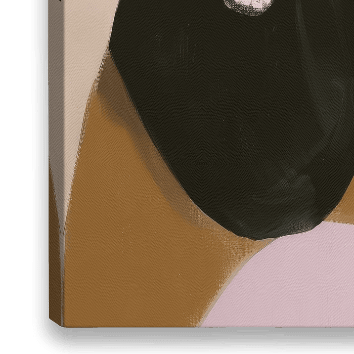 Modern portret in zwart, bruin, wit en roze. Een bijzondere blikvanger voor je interieur! Kies zelf het formaat en materiaal bij dit werk en maak het helemaal naar wens.
