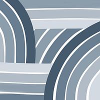 Dit schilderij is een moderne twist op de jaren 1970. Met verschillende blauwe banen, van pastel blauw tot donker denim/navy.