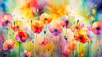 Modern schilderij van tere bijna transparante klaprozen in het veld.