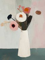 Modern stilleven met bloemen in pastelkleuren, Japandi stijl. Een bijzondere blikvanger voor je interieur! Kies zelf het formaat en materiaal bij dit werk en maak het helemaal naar wens.