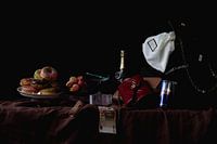 Koop dit stilleven Modern stilleven met geld, Gucci, botox en donuts van Moniek Kuipers op canvas, aluminium dibond, (ingelijste) fotoprint, behang en ArtFrame, op maat geprint in Fine-Art kwaliteit.
