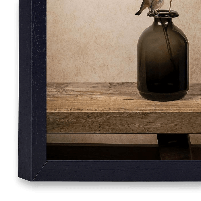 Modern stilleven: vaas met roodborstje van By Marjolein Design