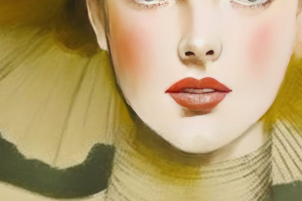 Portret "Olivia". Geïllustreerd portret in voornamelijk rustige en warme kleuren. Geeltinten, bruin en roze.