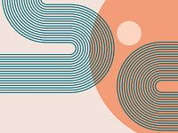Een abstract schilderij van organische geometrische regenbooglijnen en gebogen vormen met een impressie van Scandinavische kunst uit Noord-Europa met een vleugje Japanse cultuur.