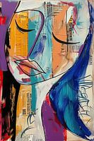 Koop dit portret Moderne Abstracte Vrouw Met Kleur van Blikvanger Schilderijen op canvas, aluminium dibond, (ingelijste) fotoprint, behang en ArtFrame, op maat geprint in Fine-Art kwaliteit.