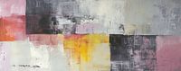 Details: abstract, modern, schilderij, geometrisch, canvas, kleurrijk, geel, roze, grijs, zwart, wit