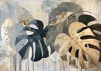 Moderne Bladeren voor Tuin - Op dit planten schilderij zie je grote bladeren in verschillende tonen van groen en goud, die samen een levendige en moderne uitstraling geven aan de ruimte, perfect voor in de tuin.