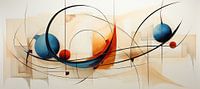 Moderne Contrasten - Dit gestileerde werk speelt met de balans tussen organische vormen en strakke lijnen, en creëert een dynamische samenspel dat modern en eigentijds oogt. De combinatie van zachte beige en crèmetinten met levendige accenten in blauw en oranje voegt een warme energie toe. De zwevende bolvormen en de vloeiende contouren zorgen voor een serene, bijna zwevende compositie.