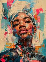 Dit is deel 3 van 3 uit mijn eigentijdse ode aan 'Het Meisje met de Parel'. De kraag met rits en de sjaal op haar hoofd vormen een grafisch kadervoor haar trotse gezicht. De verf is hier het meest tastbaar: messtreken, krassen, druppels.