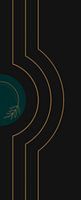 Abstracte kunst met de kleuren zwart, turquoise en goud. Organische vormen met lijnen en cirkels en een takje met blaadjes.