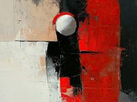 Moderne Kunst Rode Zwarte Cirkel - Dit abstracte schilderij kenmerkt zich door dominante rode en zwarte kleurvlakken, onderbroken door een opvallend wit rond element, wat een balans creëert die rustgevend werkt.