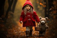 Koop dit digital art kunstwerk Moderne Magie: Roodkapje's Dagelijkse Avontuur van Karina Brouwer als reproductie op canvas, aluminium dibond, (ingelijste) fotoprint, behang en ArtFrame, op maat geprint in Fine-Art kwaliteit.