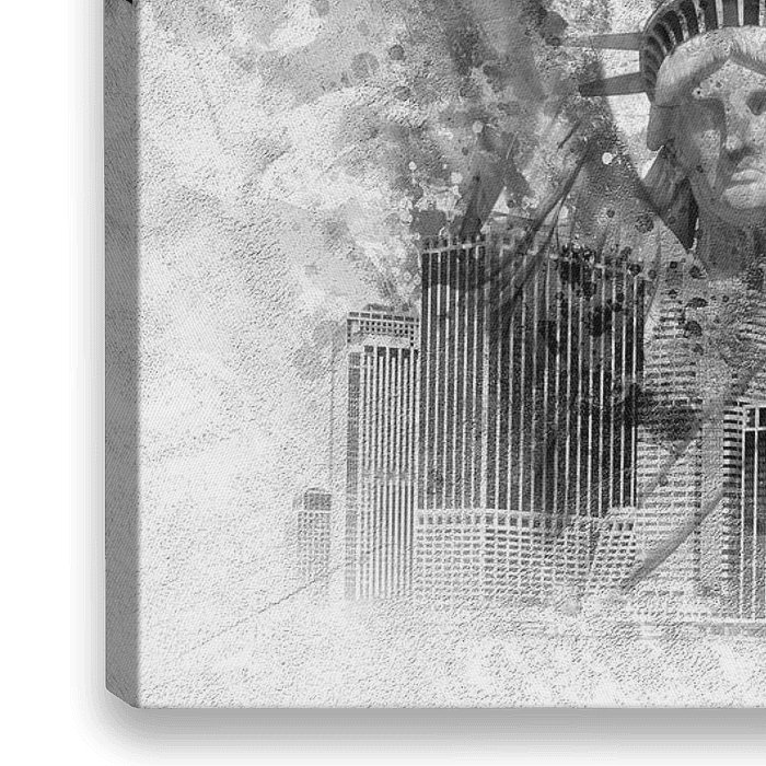 De compositie van NYC bestaat uit de skyline van Manhattan met de Brooklyn Bridge, de wolkenkrabbers op Times Square en het Vrijheidsbeeld. Een modern en decoratief totaalwerk in de klassieke zwart-wit look.