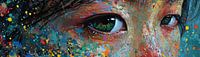 Moderne Oogkunst - Dit energieke schilderij vangt je blik met een levendige weergave van menselijke ogen, omringd door een uitbarsting van kleurrijke spatten die de chaos en schoonheid van creativiteit symboliseren. De kunstenaar speelt met een scala aan intense kleuren tegen een donkere achtergrond, waardoor de ogen, het venster naar…