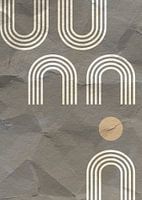 Een modern, abstract kunstwerk in minimalistische stijl met geometrische regenboogvormen. Bruine, grijze en beige kleuren op Japans papier zijn een lust voor het oog.