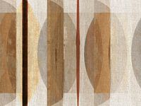 Een abstract schilderij in kleurrijke okerkleurige en ivoorkleurige tinten van organische ronde geometrische vormen op een diepe neutrale textuur met een impressie van Scandinavische kunst uit Noord-Europa met een vleugje Japanse cultuur.