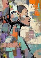 Details: vrouw, moderne kunst, hoofdtelefoon, abstract, portret, schilderij, kleurrijk, textuur,…