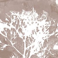 Botanische illustratie in vintage stijl Moderne minimalistische kunst in bruin en wit. Shabby- chic, Basic, Scandinavische interieurstijl. Monoprint van echte planten. Mixed media kunst.