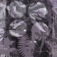 Moderne abstracte mixed media botanische kunst.Varensbladeren, organische vormen, roestige metalen texturen creëren moderne abstractie.Industrieel, Retro, Design, Urban Jungle, Scandinavisch, Boheemse interieurstijl.