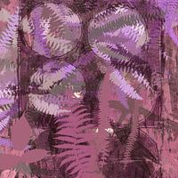 Moderne abstracte mixed media botanische kunst.Varensbladeren, organische vormen, roestige metalen texturen creëren moderne abstractie.Industrieel, Retro, Design, Urban Jungle, Scandinavisch, Boheemse interieurstijl.