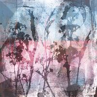 Moderne abstracte botanische kunst. Gemengde media. Planten, bloemen, grassen in pastelkleuren, abstracte texturen en lijnen. Romantisch, Basic, Scandinavisch, Industrieel, Modern chic, Landelijke interieurstijl.
