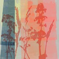 Koop dit bloemen kunstwerk Moderne abstracte botanische kunst in pastelkleuren. Koraal, neonroze, blauw van Dina Dankers op canvas, aluminium dibond, (ingelijste) fotoprint, behang en ArtFrame, op maat geprint in Fine-Art kwaliteit.
