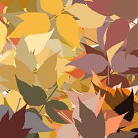 Modern abstract digitaal schilderij. Bladeren in warme retro kleuren.