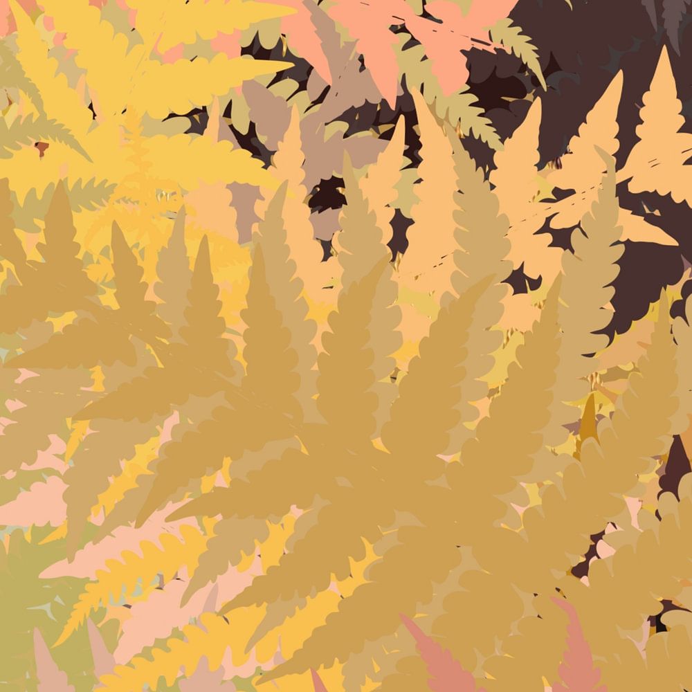 Modern abstract digitaal schilderij. Bladeren in warme retro kleuren.
