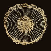 Gestileerde boomstam in gouden kleurverloop op zwart.
